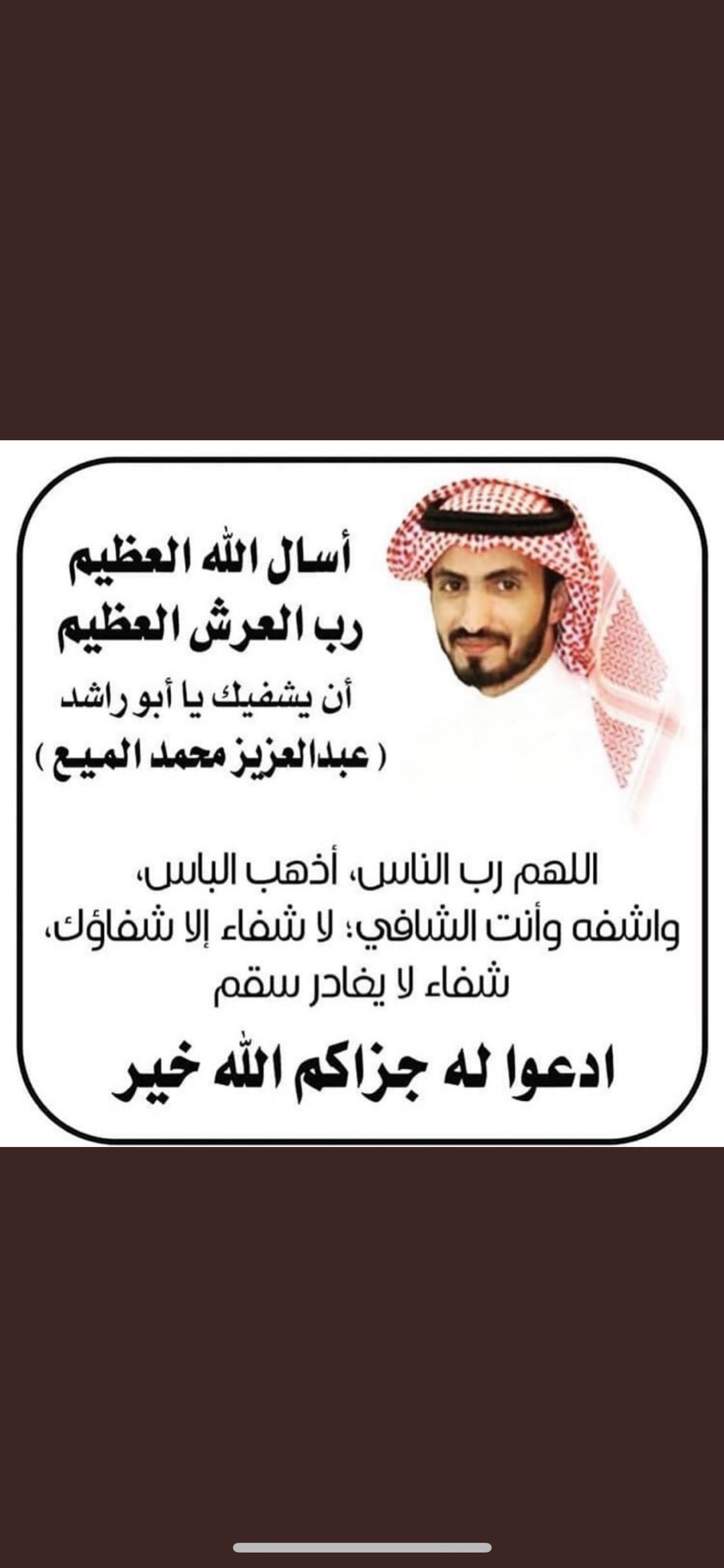 راشـــد الجـــــلاوي On Twitter اللهم اشفه شفاء لا يغادر سقم ا اللهم ألبسه لباس الصحة والعافية يارب العالمين اسال الله العظيم رب العرش العظيم ان يشفيك شفاء لايغادر سقما Https T Co Gwrgx8dcmi